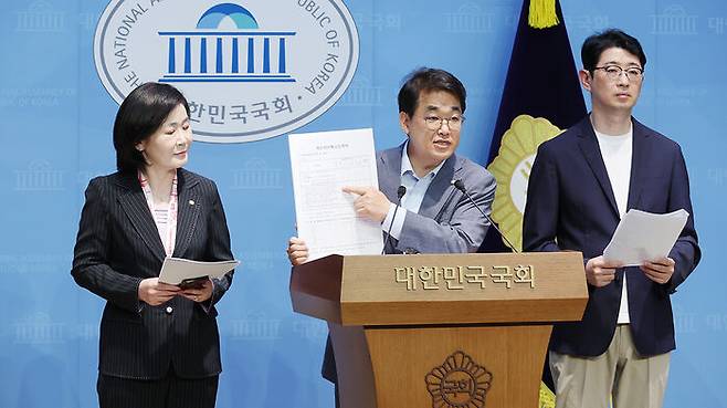 ▲ 22일 서울 여의도 국회 소통관에서 국민의힘 국무총리 인사청문특위 위원인 김희정(왼쪽부터), 배준영, 주진우 의원이 기자회견을 하고 있다.