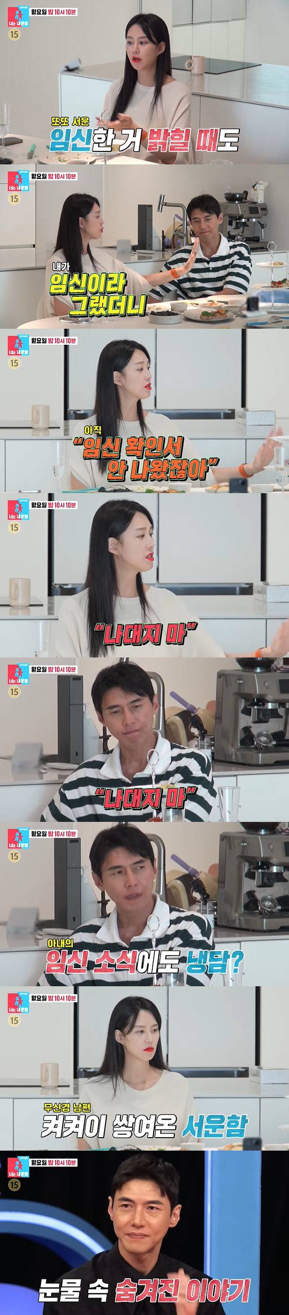 지소연은 "나 임신한 거 밝힐 때, 임신이라 그랬더니 오빠가 '소연아 임신 확인서 안 나왔잖아. 나대지마'라고 하지 않았냐"며 임신 소식에서 냉담했던 송재희의 모습을 떠올렸다. 이에 깊은 한 숨을 내쉬는 송재희.