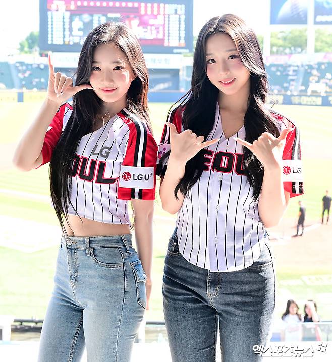 (엑스포츠뉴스 잠실, 김한준 기자) 22일 오후 서울 송파구 잠실야구장에서 열린 '2025 신한 SOL Bank KBO리그' 두산 베어스와 LG 트윈스의 경기, 시구 및 시타에 임하는 트리플에스 유연과 채연이 포즈를 취하고 있다.