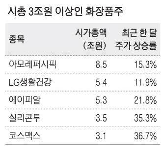 K뷰티의 인기가 높아지면서 전통의 대장주보다 새내기주와 제조업자개발생산(ODM) 관련 회사들 주가가 더 빠른 속도로 오르고 있다.