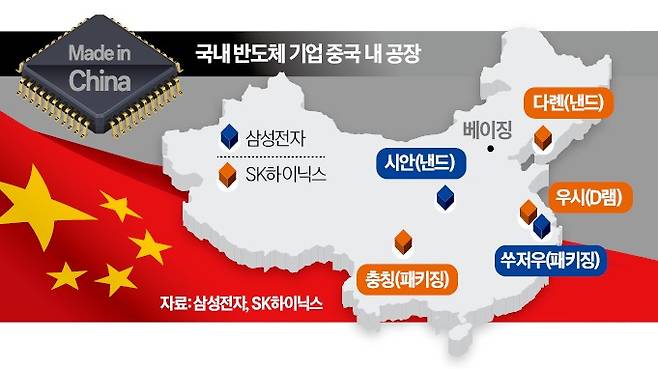 미국 정부가 “삼성전자와 SK하이닉스의 중국 공장에 미국산 장비 반입을 제한할 수 있다”는 방침을 통보해 국내 반도체 업계에 비상이 걸렸다. 제재가 현실화하면 향후 중국 공장의 효율이 크게 떨어질 수밖에 없어서다. 정부와 반도체업계는 아직 최종 확정된 건 아닌 만큼 협상을 통해 미국이 기존 방침을 철회하게 하는 데 총력을 다한다는 계획이다.