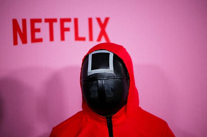 | ▲ 넷플릭스 시리즈 ‘오징어 게임’의 경비원 복장을 한 한 사람이 2024년 12월 12일 미국 캘리포니아주 로스앤젤레스에서 열린 ‘오징어 게임 시즌 2’의 시사회에 참석하고 있다. |