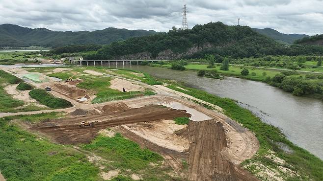| ▲ 황강에서 벌어지고 있는 4대강사업 식의 삽질. |