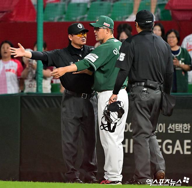 그런데 에레디아의 안타 이후 심판진이 한 곳에 모여 이야기를 나눴다. 얼마 지나지 않아 이숭용 SSG 감독도 그라운드에 나왔다. 이후 이 감독과 심판진의 대화가 이어졌고, 심판진은 에레디아를 퇴장 조치했다. 홈팀 SSG의 관중석에서는 야유가 나왔다.