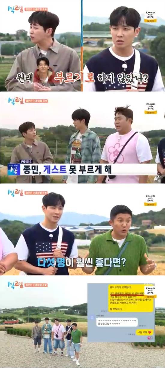 멤버들은 김종민의 부재 그대로 게스트 없이 이번 여행이 진행되는 것에 대해 김종민의 입김이 있었는지를 의견이 분분했다.