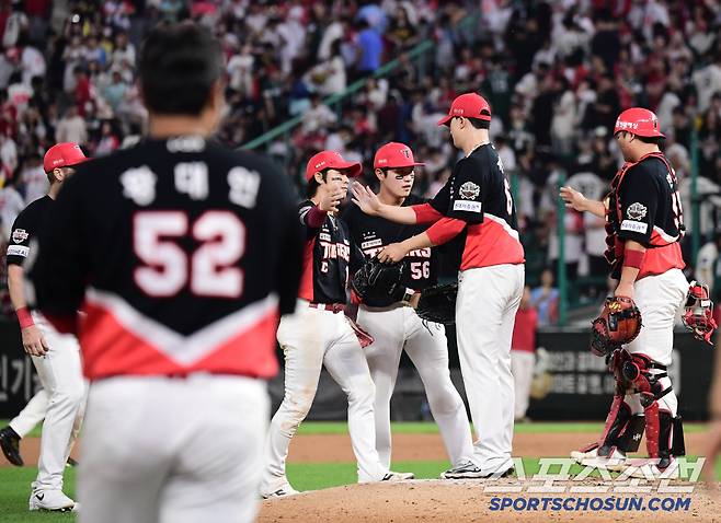 22일 인천 SSG랜더스필드에서 열린 SSG와 KIA의 경기. KIA가 SSG에 승리했다. 경기 종료 후 승리의 기쁨을 나누고 있는 KIA 선수들. 인천=송정헌 기자songs@sportschosun.com/2025.06.22/