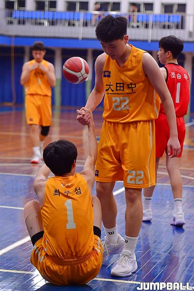 대전중은 베스트5의 고른 활약을 앞세워 문화중을 92-73으로 이겼다.