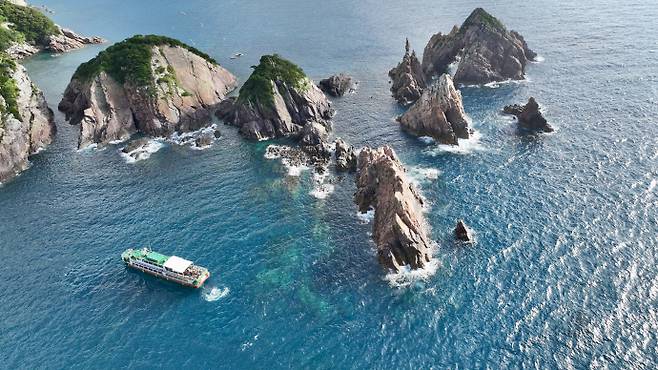 홍도는 걷는 섬이다. 오직 두 다리로 천천히, 섬과 대화하듯 길을 따라가야 한다. 촘촘한 붉은 바위 사이로 그려진 해안 산책로는 그림 같다. 그리고 섬을 한 바퀴 도는 유람선을 타며 홍도의 섬 비경을 마주할 수 있다. 아침에 태양이 바다에서 떠오르면서 물들인 바위의 붉은 결. 그 풍경 속에서 찍은 사진도 붉게 물들었다.