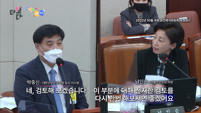 남인순/더불어민주당 의원 - 박중신/대한산부인과학회 당시 이사장 (2022년 10월/국회 보건복지위원회 국정감사)