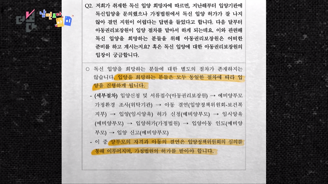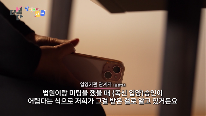법원이랑 미팅을 했을 때 (독신 입양) 승인이 어렵다는 식으로 저희가 그걸 받은 걸로 알고 있거든요. 그래서 그 이후로 잘 진행하지 않은 걸로 알고 있거든요.