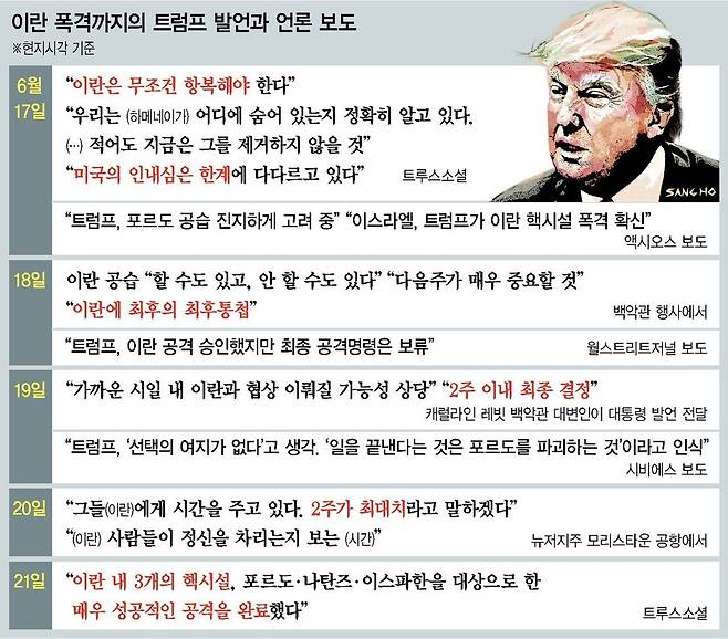 - B-2 폭격기 출격 전날에도 “2주 시한”…트럼프 ‘연막작전’
