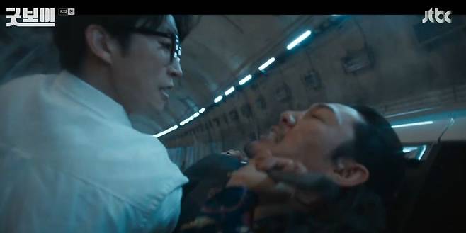 22일 JTBC '굿보이'에선 레오(고준 분)와 마귀(이호정 분)를 동원해 동주(박보검 분)와 특수팀을 공격하는 주영(오정세 분)의 모습이 그려졌다.