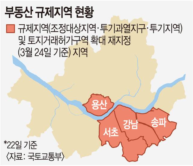 정부가 ‘가용한 모든 정책수단’을 검토하겠다고 밝힌 만큼 현재 서울 강남3구(강남·서초·송파)와 용산구에 한정된 ‘조정대상지역’ ‘투기과열지구’ ‘투기지역’ 및 ‘토지거래허가구역’ 등의 규제 지역이 확대될 가능성이 거론된다. 조정대상지역과 투기과열지구로 지정되면 각각 취득세·양도소득세, 정비사업 및 분양가상한제 등에서 규제가 강화된다.