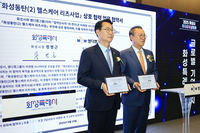 화성특례시는 'MARS 2025' 2일 차 행사인 '투자유치설명회'에서 MDM 그룹과 약 2조 원 규모의 '동탄(2) 헬스케어 리츠 사업' 업무협약(MOU)을 체결했다. 해당 협약은 50개 기업이 참여한 '투자유치설명회' 현장에서 진행됐으며, MDM 그룹을 비롯해 한국반도체산업협회, 한국수자원공사 등 국내외 50여 개 기업과 유관기관 관계자 총 120여 명이 참석해 높은 관심을 보였다.