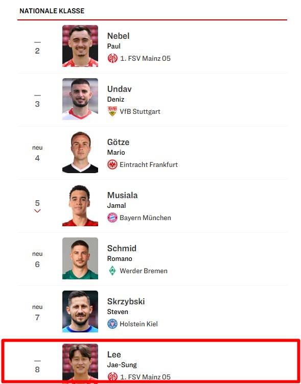 1992년생 대한민국 국가대표 미드필더 이재성은 지난 2021년 여름 독일 2부리그인 분데스리가2 클럽 홀슈타인 킬을 떠나 마인츠에 입단하면서 분데스리가에 데뷔했다.