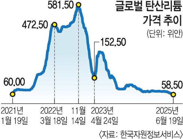 리튬 가격 90% 폭락… 배터리 업계 역마진 ‘비상’