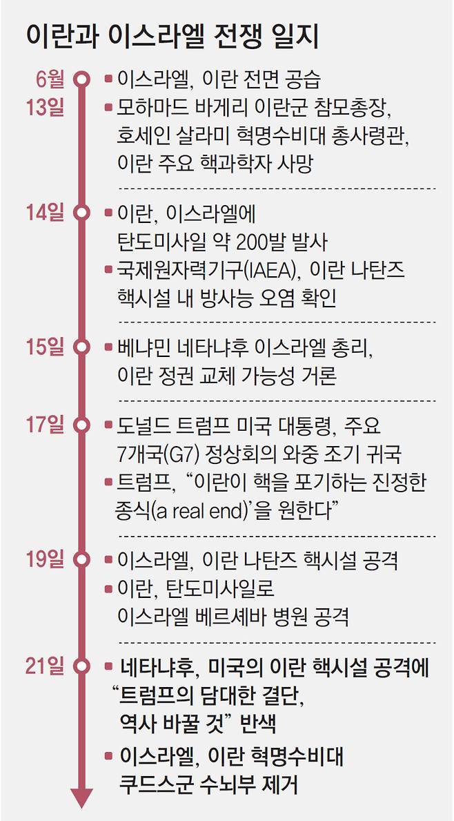 - 작전명 ‘한밤의 망치’… 이란 잠든 일요일 새벽 2시 기습 폭격