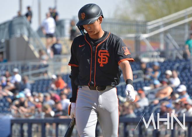 (MHN 애리조나(美) 이상희 기자) 최근 극심한 타격 슬럼프를 겪고 있는 이정후가 하루 휴식을 취한 뒤 5번 타자, 중견수로 돌아왔다. 하지만 첫 타석부터 파울 플라이로 아웃되며 아쉬움을 삼켰다.
