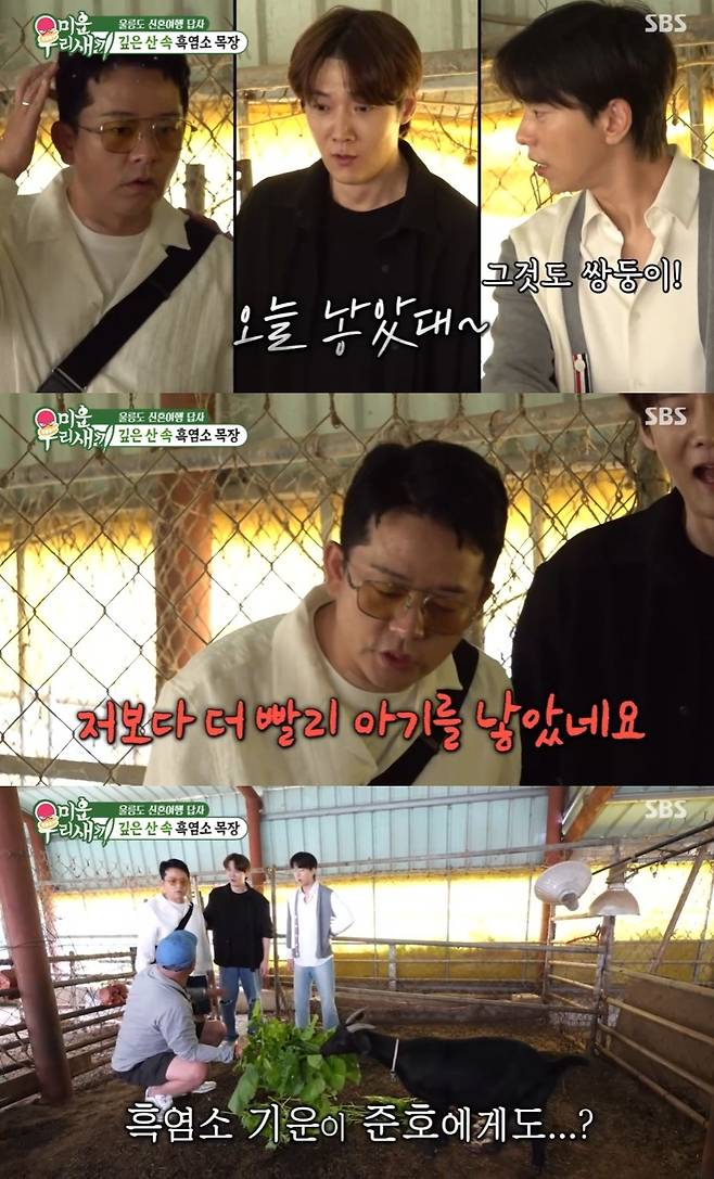 이날 세 사람은 울릉도 깊은 산 속 흑염소 목장을 찾았다. 목장에 들어서자 오늘 아침에 갓 태어난 아기 흑염소 쌍둥이가 눈길을 끌었다. 생후 8시간 새끼 흑염소의 사랑스러움에 스튜디오도 연신 감탄했다.