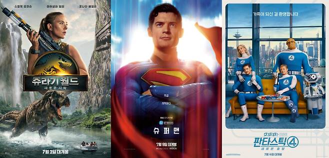 ‘쥬라기 월드: 새로운 시작’, ‘슈퍼맨’, ‘판타스틱4: 새로운 출발’ (사진=각 사 제공)