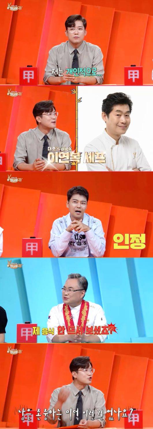 김대호는 솔직한 안유성 셰프의 화법에 당황하며 "여기는 남을 존중하는 문화나 미덕이 없냐"라고 물었다. 전현무는 "없다"라고 단호하게 말하며, "김대호가 맛있다는 말을 안 했는데도 까지 않나"라고 설명했고, 안유성 셰프는 "맞다. 이 자리에 (정호영이) 없으니까 까는 것"이라고 말해 웃음을 더했다.