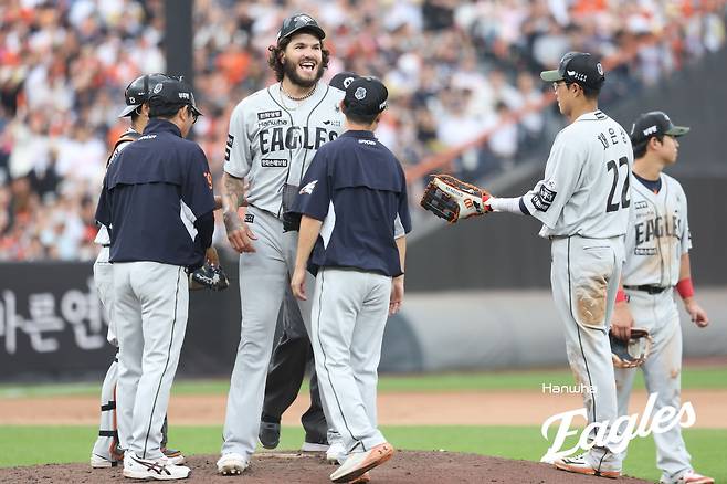 물론 예상치 못한 장면도 있었다. 3회초 2사 주자 1루 상황 임지열과의 승부에서 벤치클리어링이 나왔다. 대전 한화생명 볼파크 개장 후 나온 첫 벤치클리어링이었다.