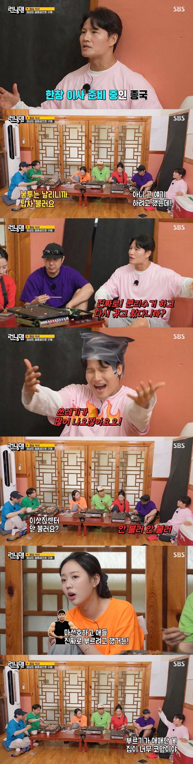 이사하는데 봉투가 왜 그렇게 필요하냐는 멤버들의 이야기에 김종국은 "분리수거하잖아요. 쓰레기가 많이 나오잖아요"라고 해명을 했다.