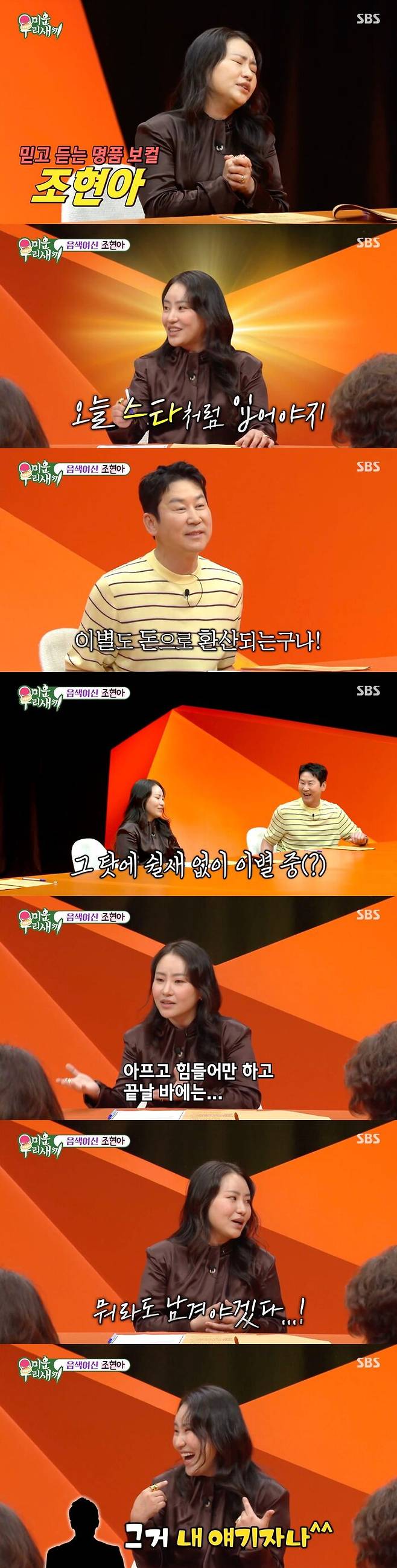 신동엽은 조현아에 대해 "저작권의 여왕인데 이별도 돈으로 환산되는 걸 알고 열심히 이별 중이라고 하더라"라고 말했다.