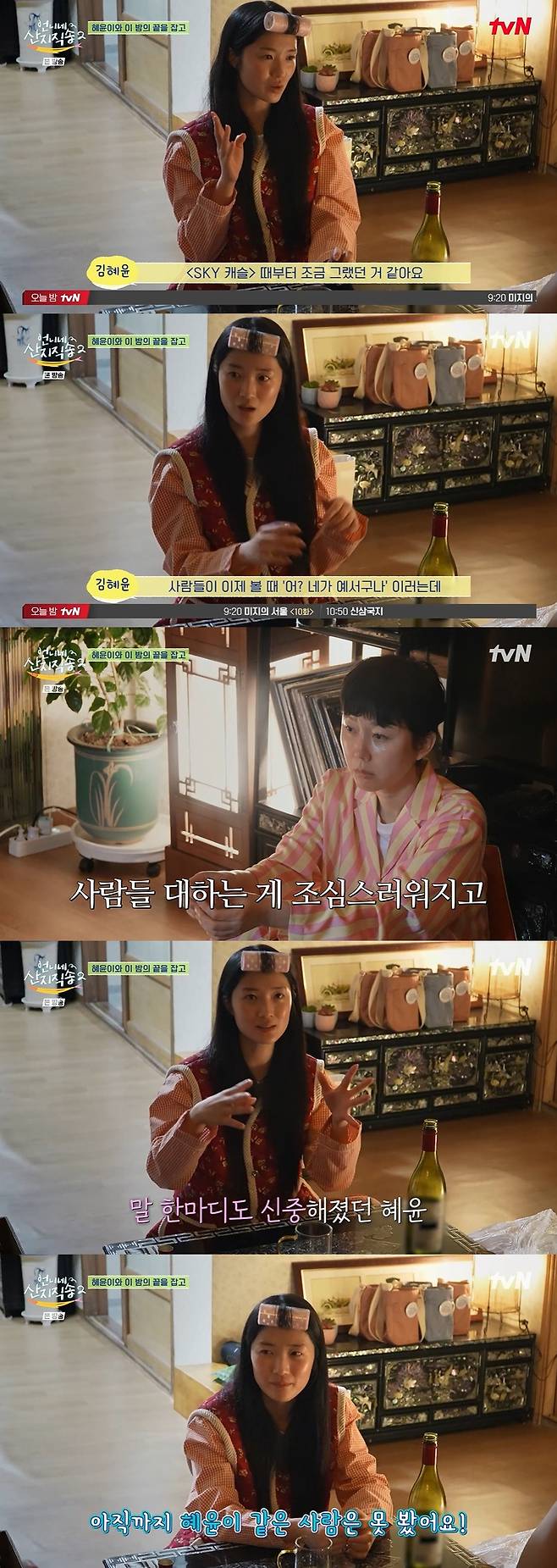 김혜윤은 "지난 일이니까"라며 담담하게 말했고, 그게 언제였냐는 박준면의 질문에 "'SKY 캐슬' 때부터 조금 그랬던 것 같다. 뭔가 저를 볼 때 예전에는 '어? 너 누구야?' 이런 느낌이었는데, 사람들이 이제 볼 때 '어? 네가 예서구나. 화면이랑 다른거 같은데?' 하는 느낌이다"라고 말했다.