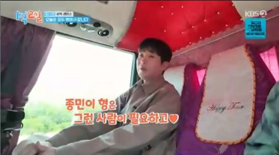 22일 방송된 KBS 2TV '1박 2일 시즌4'에서는 딘딘이 김종민 아내의 성격에 대해 전하는 모습이 전파를 탔다.