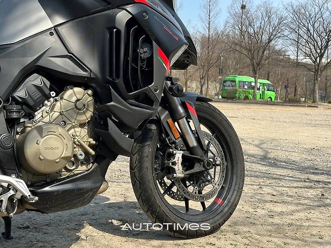 1,158㏄ V4 그란투리스모 엔진은 최고출력 170마력, 최대토크 12.3㎏·m을 뿜어낸다. 낮은 회전에서는 묵직하고 넉넉한 느낌으로 고회전에서는 매섭고 날렵한 응답성으로 달라진다. 마치 두 개의 심장을 품은 듯한 감각이다.