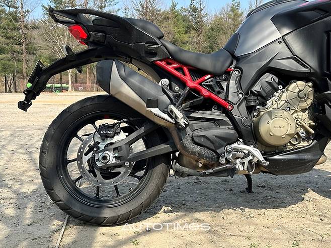 1,158㏄ V4 그란투리스모 엔진은 최고출력 170마력, 최대토크 12.3㎏·m을 뿜어낸다. 낮은 회전에서는 묵직하고 넉넉한 느낌으로 고회전에서는 매섭고 날렵한 응답성으로 달라진다. 마치 두 개의 심장을 품은 듯한 감각이다.