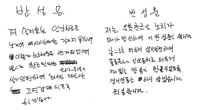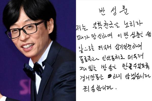 국민 MC 유재석, 배우 송지효, 가수 하하가 자필 반성문을 쓰는 굴욕을 겪었다.