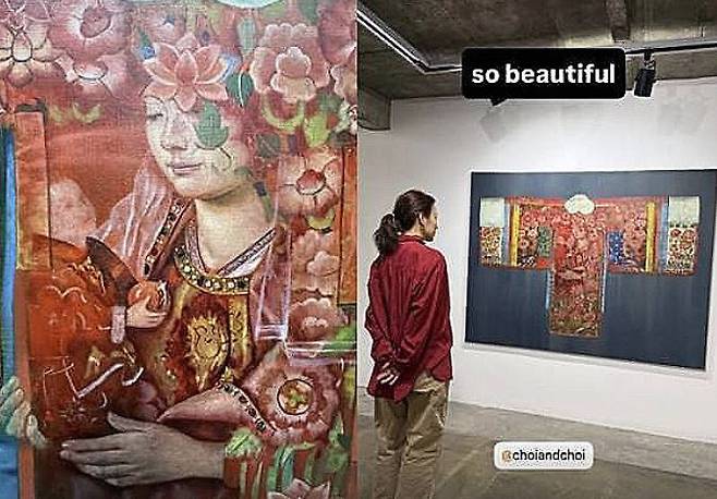 이효리는 최근 자신의 계정에 미술관을 찾아 전시를 관람하는 사진을 여러 장 공개했다. 이중에는 아기를 품에 안은 여성의 그림을 보고 있는 이효리의 모습이 담긴 사진도 있어 눈길을 끌었다. 이효리는 이 그림에 "너무 아름답다"는 소감을 남겼다.