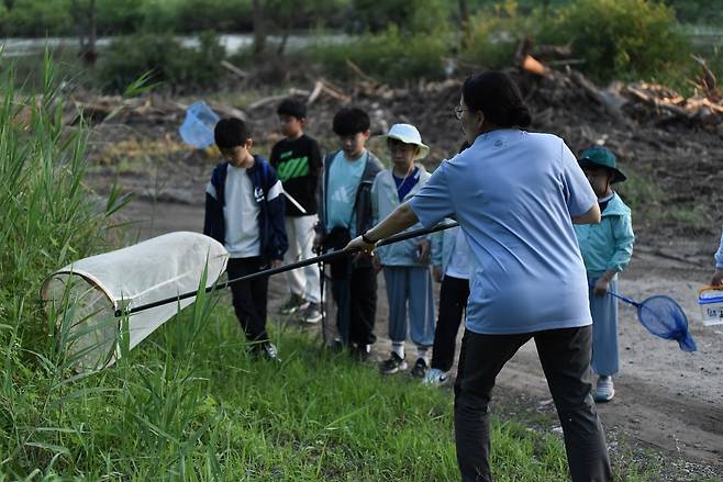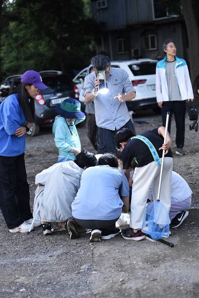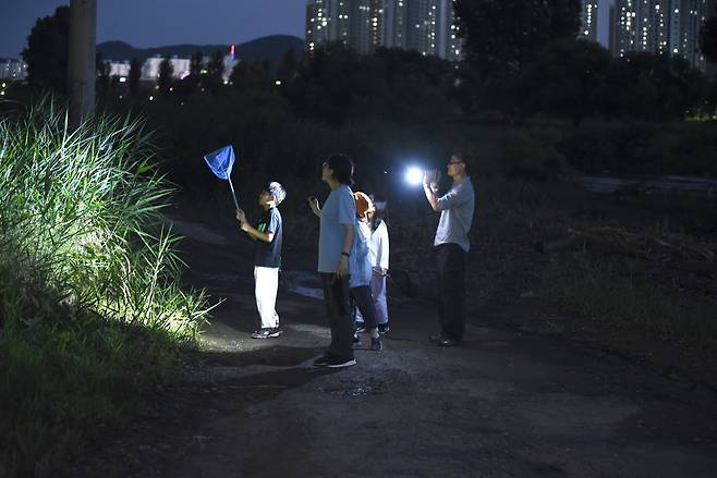 22일 저녁, 대전 월평공원의 습지에 아이들의 환호성으로 들썩였다. 도시의 불빛을 피해 어둠 속에서 반짝이는 생명을 찾기 위한 야간 곤충 탐사 수업이 열린 것이다. 이날은 대전환경운동연합이 운영하는 '월평공원 습지학교'의 네 번째 수업으로, 무더운 여름밤 자연과 더 가까워지는 시간이 마련됐다.