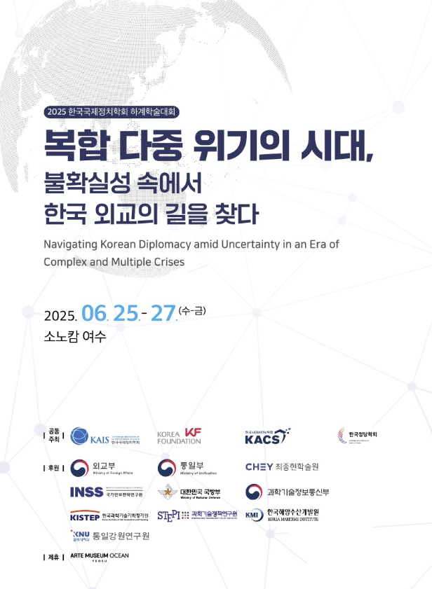 한국국제정치학회가 ‘복합 다중 위기의 시대, 불확실성 속에서 한국 외교의 길을 찾다’라는 주제로 2025 하계학술대회를 오는 25일부터 27일까지 전라남도 여수시 소노캄에서 개최한다.