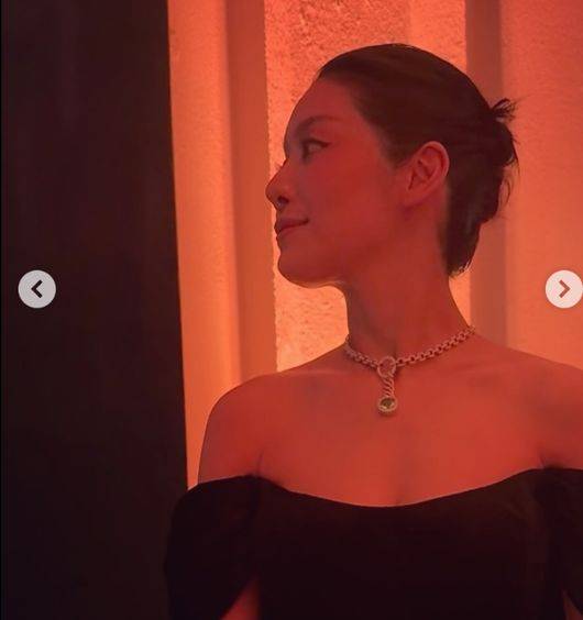 특히 차주영 특유의 길고 곧은 목선과 투명한 피부가 블랙 드레스와 극명한 대비를 이루며 시선을 압도했다. 그는 게시물과 함께 “A magical night with magical masterpieces. Delighted to meet the adorable, and yet so elegant and beautiful”이라는 글을 남기며 설레는 순간을 팬들과 공유했다.
