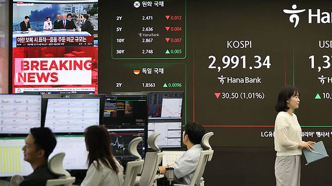 미국의 이란 핵시설 공습 여파에 위험회피 심리가 고조되면서 오늘(23일) 국내 주식과 원화 가치가 일제히 하락했습니다.