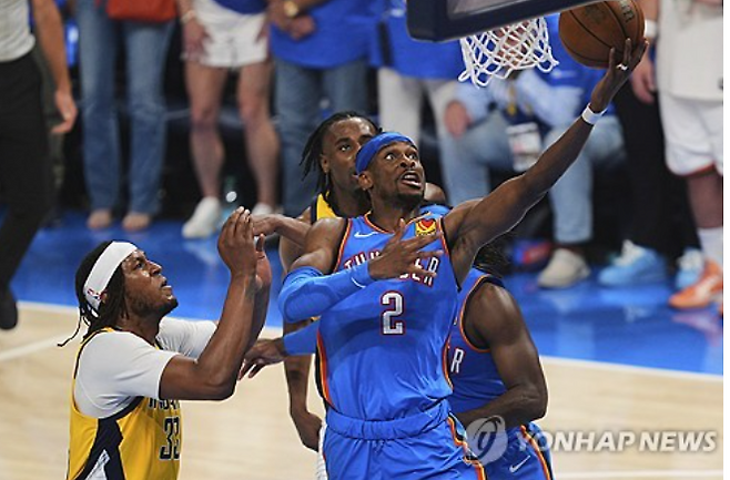 오클라호마시티 썬더는 23일(한국시간) 미국 오클라호마주 오클라호마시티 페이컴 센터에서 열린 NBA 2024-2025시즌 파이널 7차전 인디애나 페이서스와 경기에서 103-91로 이겼다.