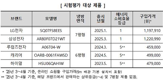 이번 시험은 LG전자·삼성전자·루컴즈전자·캐리어·하이얼 등 선호도가 높은 브랜드 제품을 대상으로 진행됐다.