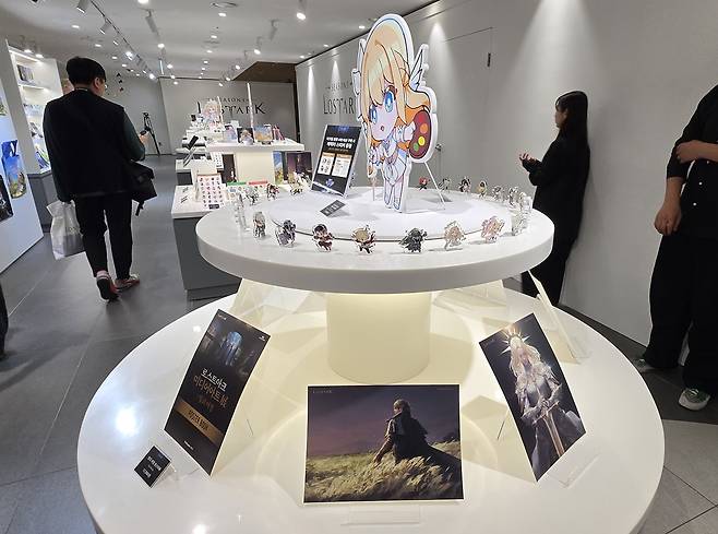 현장에는 전시 외에도 한정 굿즈를 판매하는 굿즈샵과 음료를 마시며 휴식을 취할 수 있는 '빛의 라운지'도 제공됐다. 굿즈샵 최고 인기 상품은 SD 디자인 클래스 미니 아크릴 스태츄다. 랜덤 뽑기 방식이라 28종의 클래스 중 원하는 것을 뽑느냐에 따라 희비가 갈렸다.