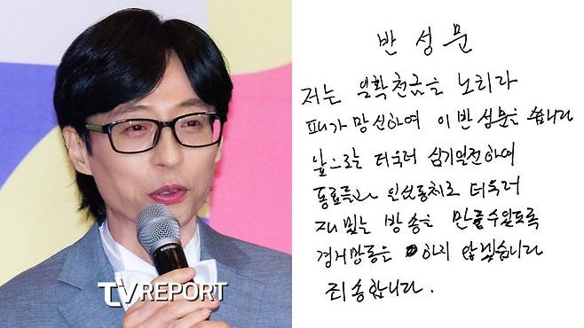 [TV리포트=조은지 기자] 코미디언 유재석이 자필 반성문을 공개했다.