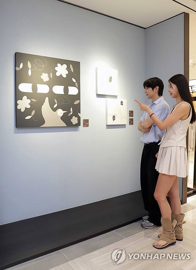 (서울=연합뉴스) 신세계백화점 강남점은 오는 8월 27일까지 일본 현대미술가 리이(LY)의 개인전 '싱잉 버즈(Singing Birds)'를 진행한다고 23일 밝혔다. 모델들이 리이(LY)의 '싱잉 버즈(Singing Birds)' 개인전을 소개하고 있다. 2025.6.23 [신세계백화점 제공. 재판매 및 DB 금지]