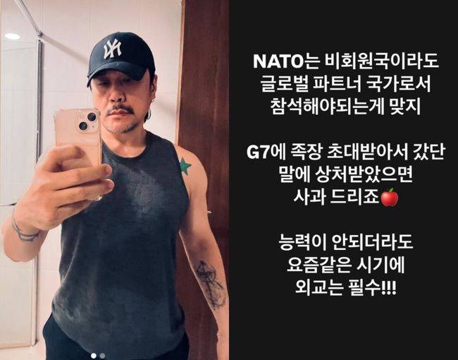 이어 “G7에 족장 초대받아서 갔단 말에 상처받았으면 사과드리죠”라며 “능력이 안되더라도 요즘 같은 시기에 외교는 필수”라고 덧붙였다.