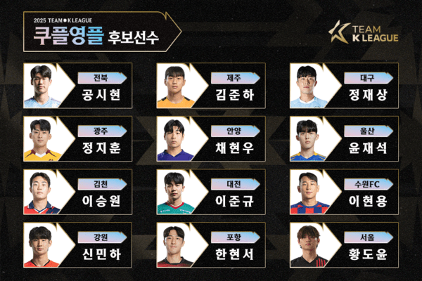 올해 후보는 신민하(강원), 정지훈(광주FC), 이승원(김천상무), 정재상(대구FC), 이준규(대전하나시티즌), 황도윤(FC서울), 이현용(수원FC), 채현우(FC안양), 윤재석(울산 HD), 공시현(전북현대), 김준하(제주SK FC), 한현서(포항스틸러스)다. 이 중 팬들의 선택을 받은 1명이 쿠플영플 자격으로 2025 쿠팡플레이 시리즈에 출전한다.