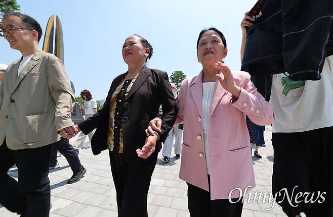 | ▲ 베트남전 민간인학살 등 인권침해 진실규명 촉구 1만 시민 청원 한국을 방문한 베트남전 민간인학살 피해생존자인 응우옌티탄(퐁니학살 피해생존자)씨, 응우옌티탄(하미학살 피해생존자. 동명이인)씨와 베트남전쟁 문제의 정의로운 해결을 위한 시민사회 네트워크 대표단이 23일 오전 서울 용산 대통령실 앞에서 ‘이재명 대통령에게 요구하는 베트남전 민간인학살 등 인권침해 진실규명 촉구 1만 시민 청원’ 제출 면담에 대한 사후 브리핑을 과 기념촬영을 마친 뒤 이동하고 있다. |