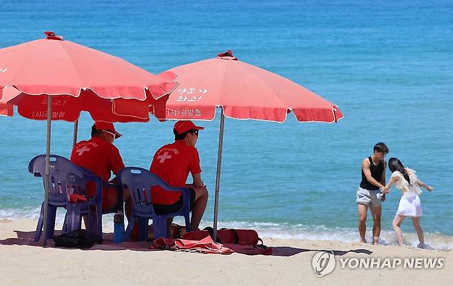 (강릉=연합뉴스) 유형재 기자 = 23일 강원 강릉시 경포해수욕장에 수상안전요원이 배치돼 개장 전 안전사고 예방 활동에 나서고 있다.