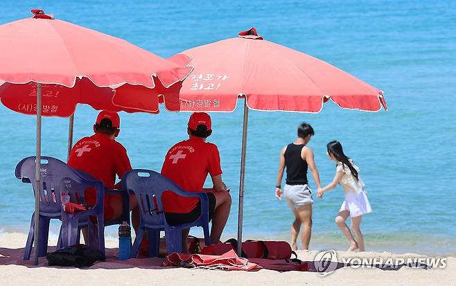 (강릉=연합뉴스) 유형재 기자 = 23일 강원 강릉시 경포해수욕장에 수상안전요원이 배치돼 개장 전 안전사고 예방 활동에 나서고 있다.