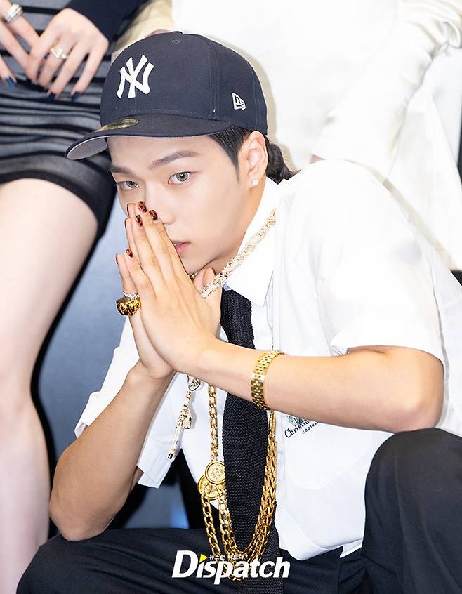 타잔은 화이트 셔츠와 블랙 팬츠 야구 모자로 스타일을 완성했다. 힙합 스웨그로 행사장 분위기를 올렸다.
