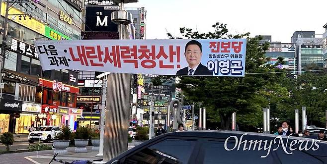 진보당 창원성산구위원회는 지난 4월 창원시 성산구 상남분수광장에 "다음 과제 : 내란세력 청산"이라고 쓴 펼침막을 내걸었고, 이후 펼침막이 훼손되어 경찰에 재물손괴죄로 고소했다.
